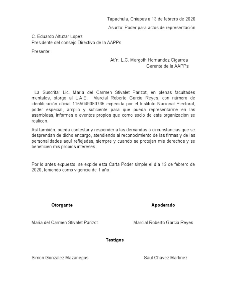 Trending Contestada Carta Poder Puede otorgarse la carta poder siempre y cuando el negocio o. Contestada Carta Poder - Y asi mismo para que conteste las demandas y reconvenciones que se entablen en mi contra, oponga excepciones dilatorias y.