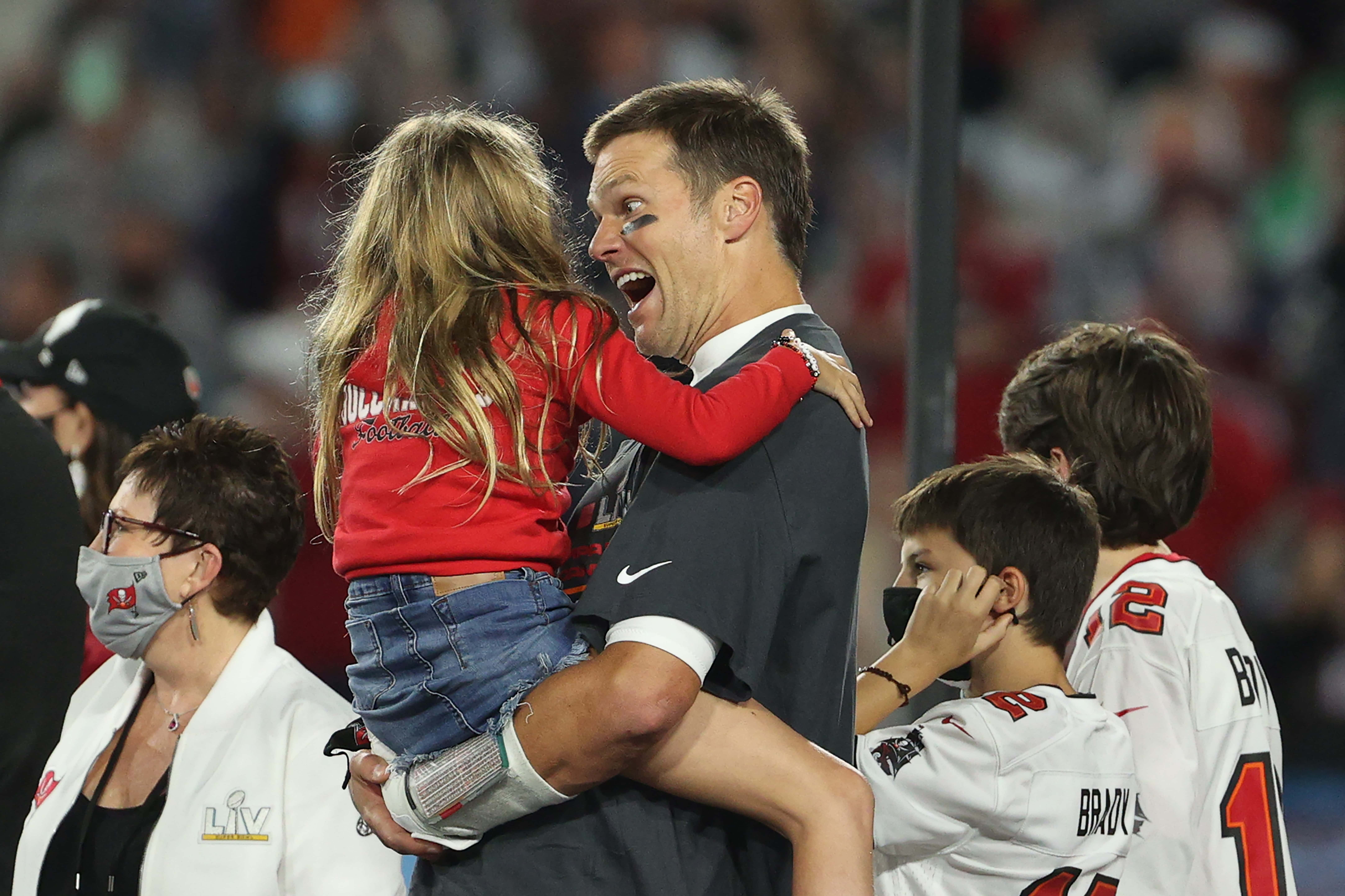 Super Bowl Lv Tom Brady Celebrates With Kids People Com - John edward thomas moynahan a.k.a jack is the first son of tom brady (thomas edward patrick brady jr).